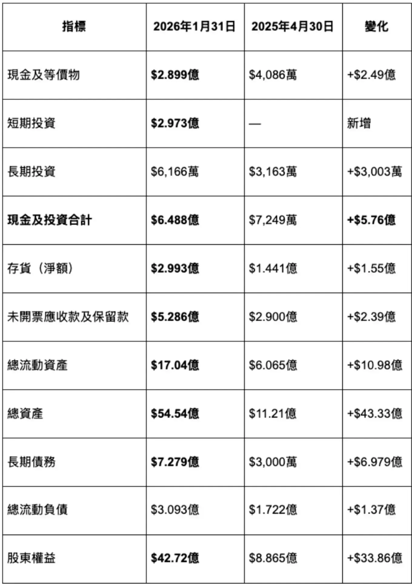(三)營運資金持續擴張的回收風險。 未開票應收款及存貨合計 $8.279億,佔總流動資產近半。