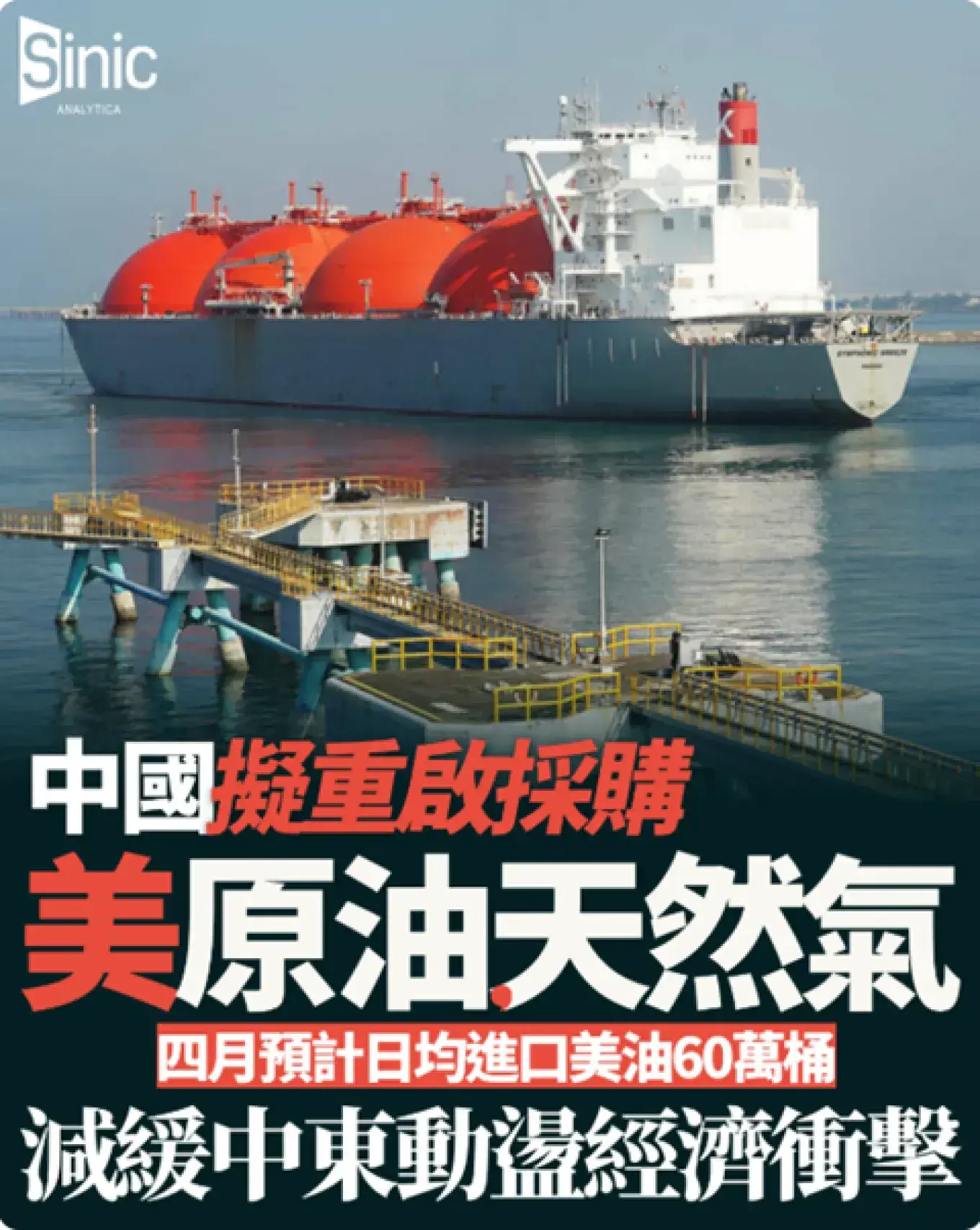 中共原是回應特朗普關稅政策而停止採購美國原油及LNG,並對相關產品加徵附加稅。特朗普曾要求大陸擴大購買美國能源、農產品及飛機。上述議題料將在5月北京舉行的美中峰會上提上議程。分析認為,在供應安全顧慮日增的背景下,北京接受美方能源採購要求的代價相對可控,並可借此換取關稅減讓及緩和雙邊緊張關係。