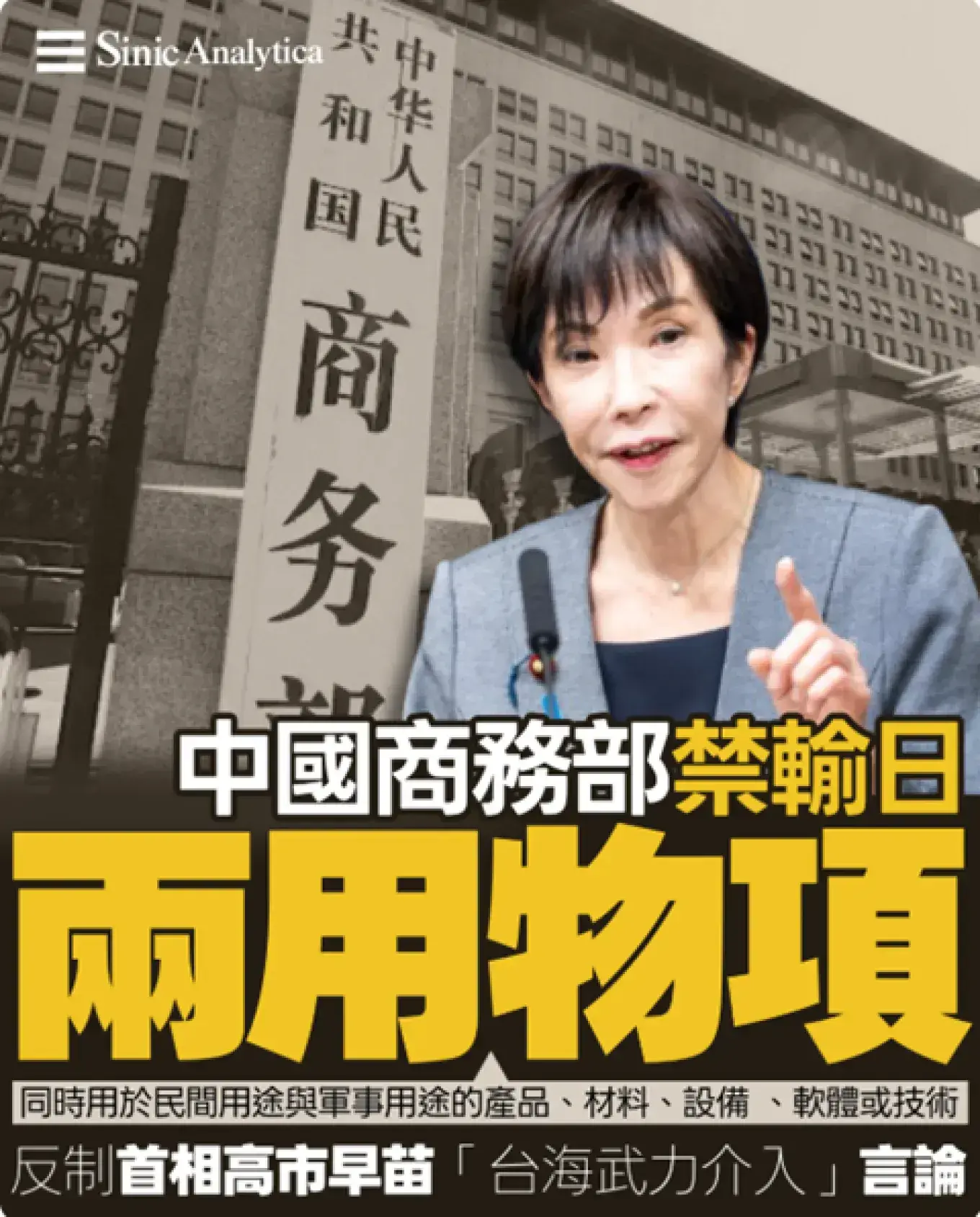 中國商務部在官方聲明中採取強硬措辭,明確禁止向日本軍事用戶,