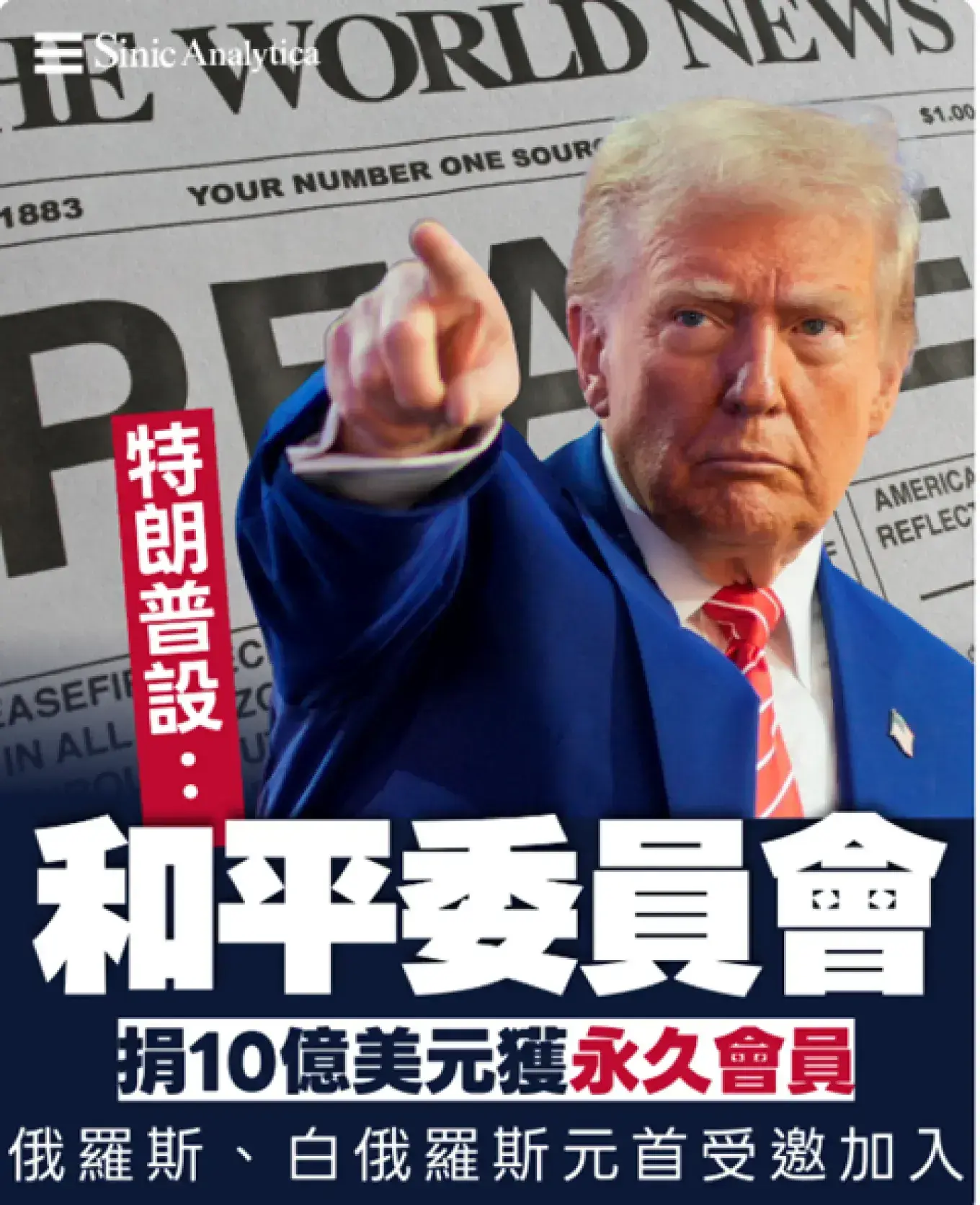 2. 【免費新聞試閱】特朗普設「和平委員會」捐十億可做永久會員 俄羅斯、白俄羅斯元首受邀加入