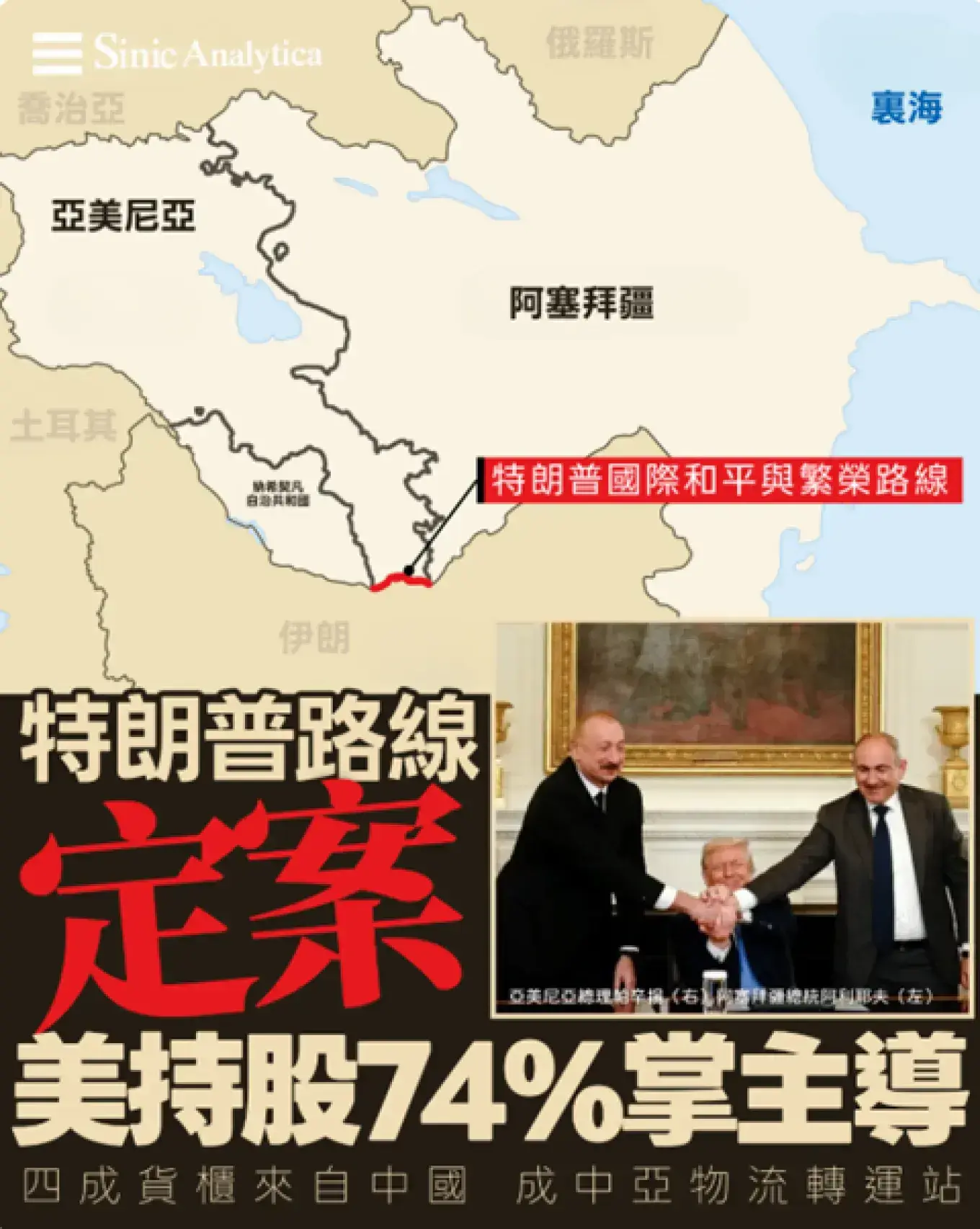 特朗普路線源於去年8月的和平協議。美國總統特朗普(Donald Trump)促成阿塞拜疆與亞美尼亞達成協議。兩國是長期敵對國家。路線因此冠上特朗普名字。日經亞洲(Nikkei Asia)去年12月獲阿塞拜疆政府邀請前往巴庫。官員介紹了這條連接亞美尼亞的路線進展。路線將提供連接東西方的替代途徑且不經過格魯吉亞。格魯吉亞與俄羅斯接壤。