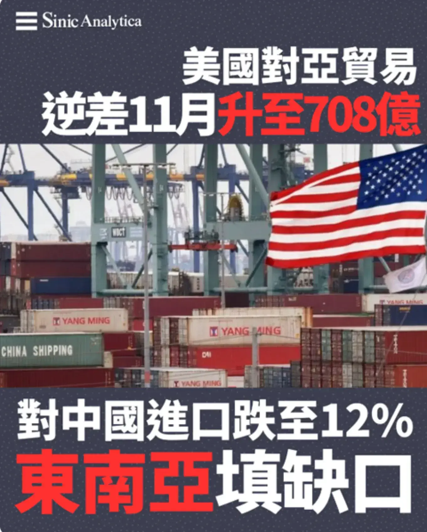 2. 美國對亞貿易逆差11月升至708億美元ㄖ對陸進口降12%遭東南亞填補